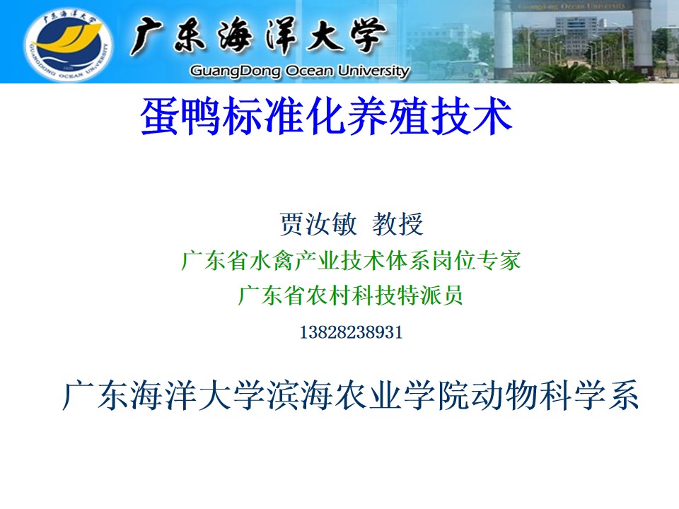 廣東省水禽產業技術體系崗位專家、廣東省農村科技特派員、廣東海洋大學濱海農業學院動物科學系賈汝敏教授通過視頻會議作《蛋鴨標準化養殖技術》報告,首先詳細介紹我國蛋鴨產業現狀和蛋鴨的品種,深刻剖析蛋鴨的標準化養殖技術,同時指出蛋鴨養殖面臨的主要問題及原因是產蛋量不高、平均體重不夠、整齊度不好、產蛋高峰期短、發病多發病急、蛋鴨淘汰早和鴨不掙錢,最后分享了蛋鴨高產穩產的關鍵是全程使用高山中藥無抗大健康養殖預防保健方案。