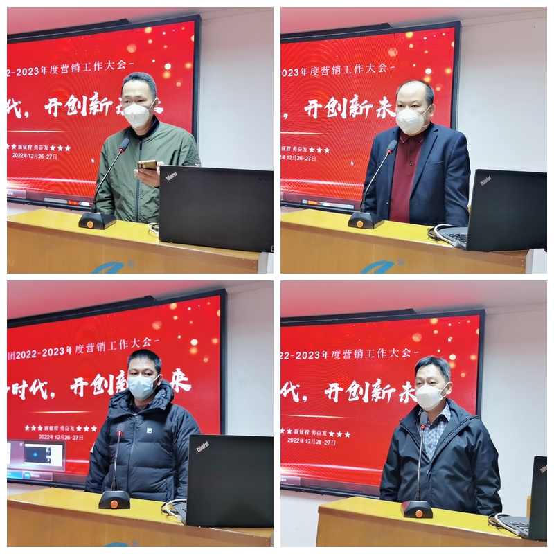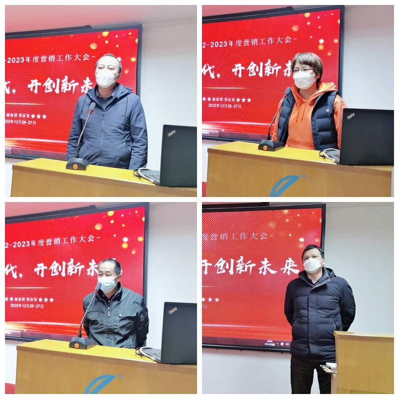 營銷中心營銷總監陳翠作《營銷工作總結》報告,首先總結2022年營銷工作的情況、亮點和不足,同時作出2023年工作計劃與目標,要求大家要落實六大堅定和做好五大堅持,最后介紹和展示了新產品。