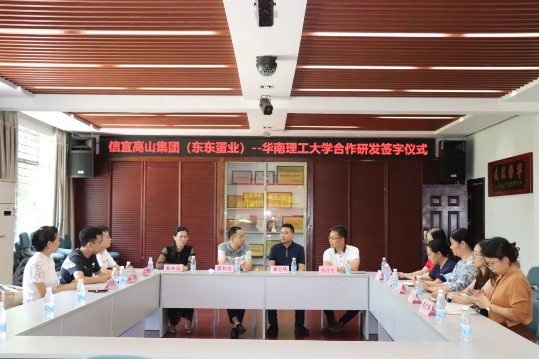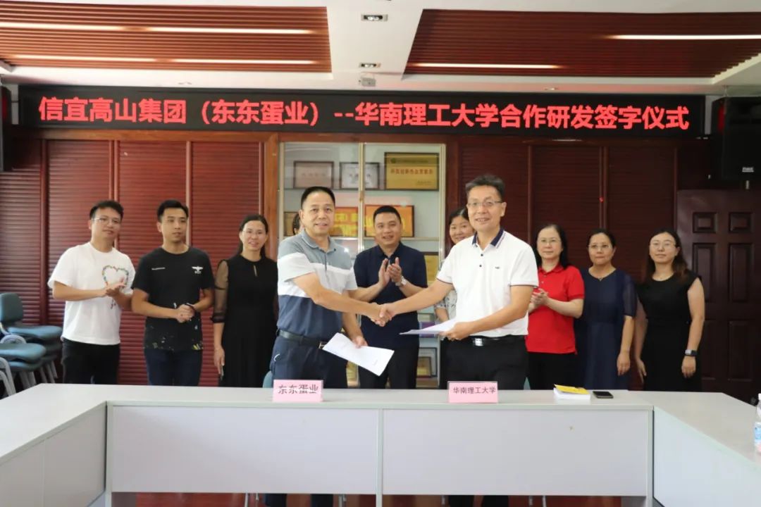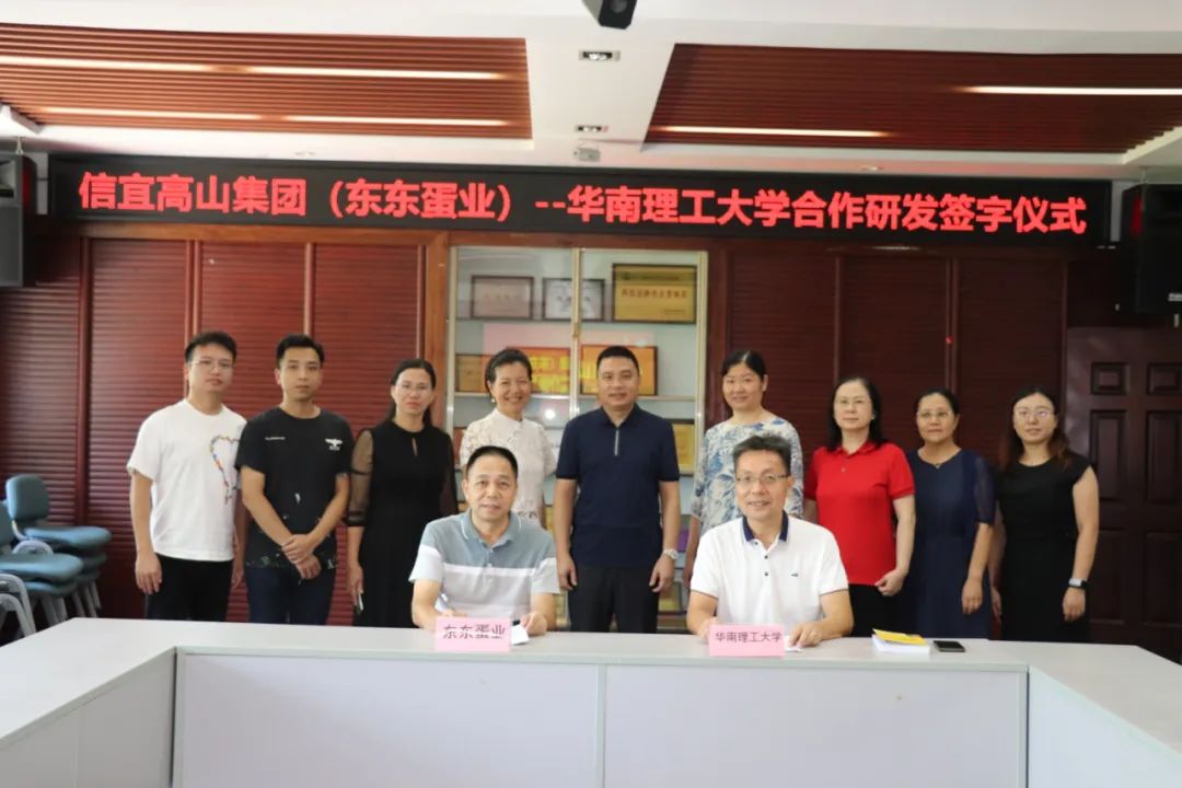 2022年9月3日上午,東東蛋業(yè)(廣東)有限公司與華南理工大學(xué)食品學(xué)院戰(zhàn)略合作簽約儀式在廣州舉行,高山集團(tuán)掌舵人梁其佳、東東蛋業(yè)總經(jīng)理黎來鳳和團(tuán)隊(duì)代表梁財(cái)權(quán)、梁鑫,華南理工大學(xué)食品科學(xué)與工程學(xué)院黨委書記譚志偉、碩士生導(dǎo)師李汴生教授及其創(chuàng)新團(tuán)隊(duì)代表參加了簽約儀式,召開技術(shù)座談會(huì),并決定成立華南理工大學(xué)食品學(xué)院(李汴生教授)信宜創(chuàng)新中心。