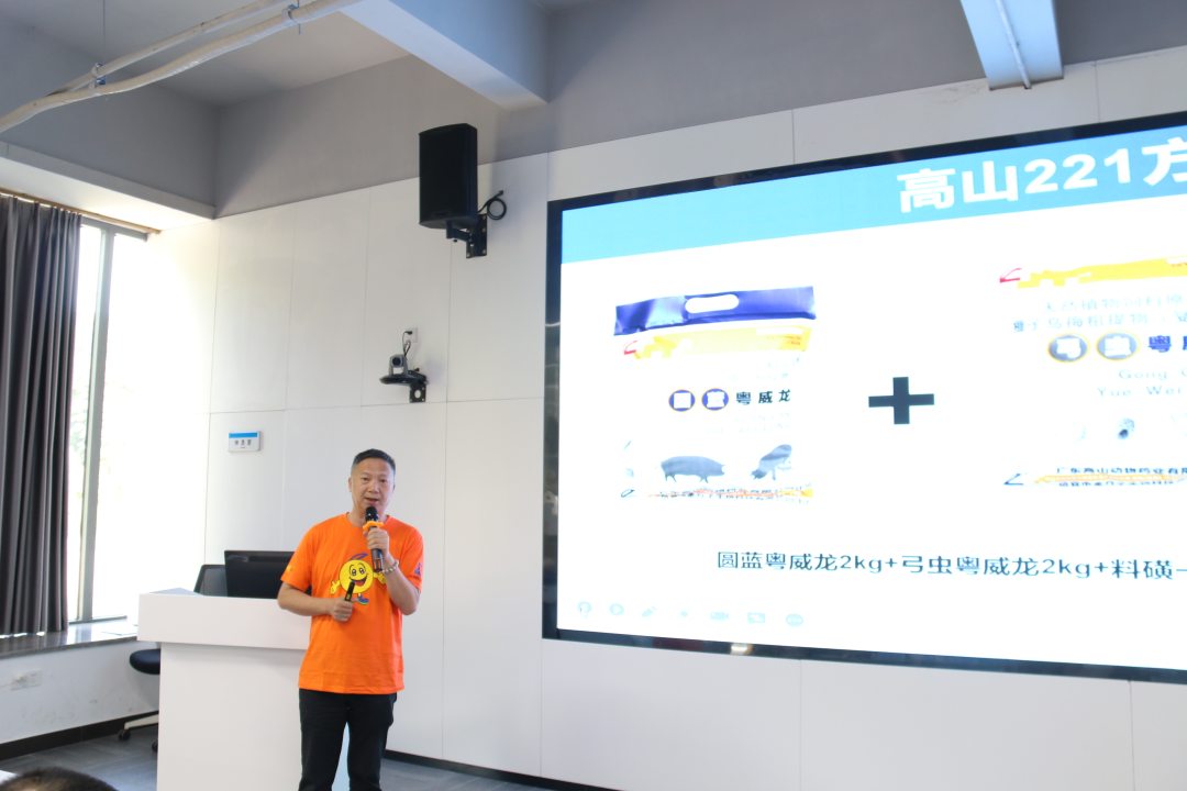 李毅老師分享了高山221保健方案的使用體驗:圓藍(lán)粵威龍2kg+弓蟲粵威龍2kg+料磺一號1kg,拌一噸料使用。達(dá)到扶正固本,激活免疫因子,清除原蟲,內(nèi)毒素排解的功能。只要堅持長期使用,生產(chǎn)更穩(wěn)定,豬群更健康。