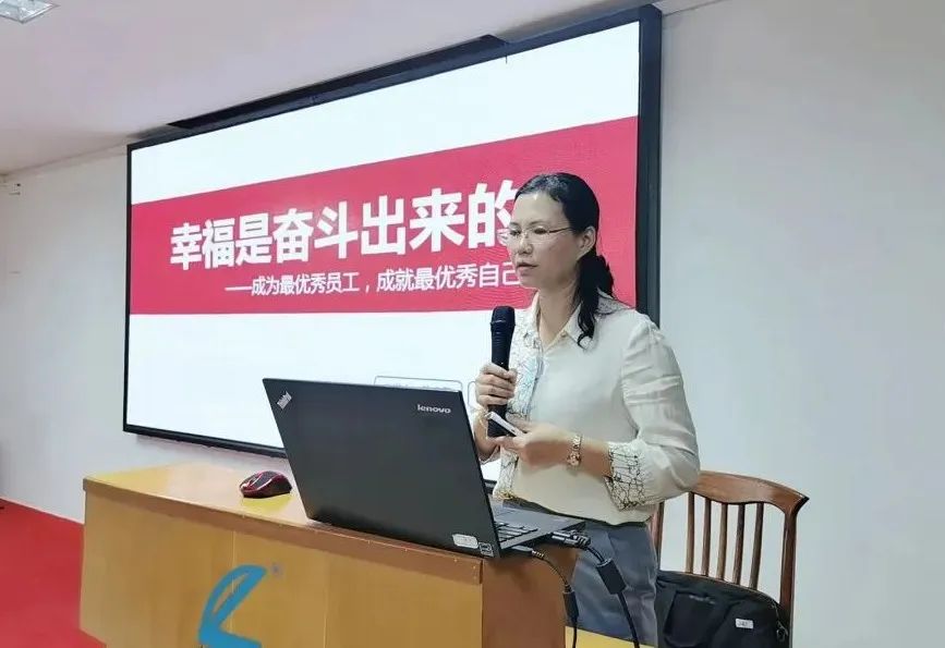 高山集團副總經理、東東蛋業總經理黎來鳳作《幸福是奮斗出來的》講話,勉勵大家要成為最優秀的員工,成就最優秀的自己,首先要具備獨當一面,獨立工作的能力,還要把握機會,創造機會,并且要有終身學習的心態。