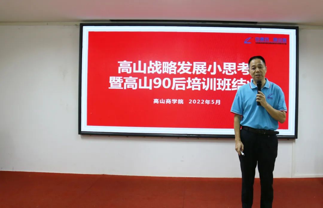 華南農業大學學位研究生第二導師、廣東海洋大學客座教授、高山商學院院長、集團董事長梁其佳作了《高山戰略發展小思考暨高山90后干部培訓班》結業講話,主要有三個方面的思想內容,一是高山戰略發展的研究報告,二是黨國歷史與高山戰略發展,三是高山90后青年干部培訓班結業寄語。他強調高山戰略發展的未來依靠是高山青年和高山干部,寄語大家要永遠保持著革命精神和斗爭精神,并在不斷創新中突破,以踐行生命健康使者的企業發展使命實現跨產業周期的健康發展道路。