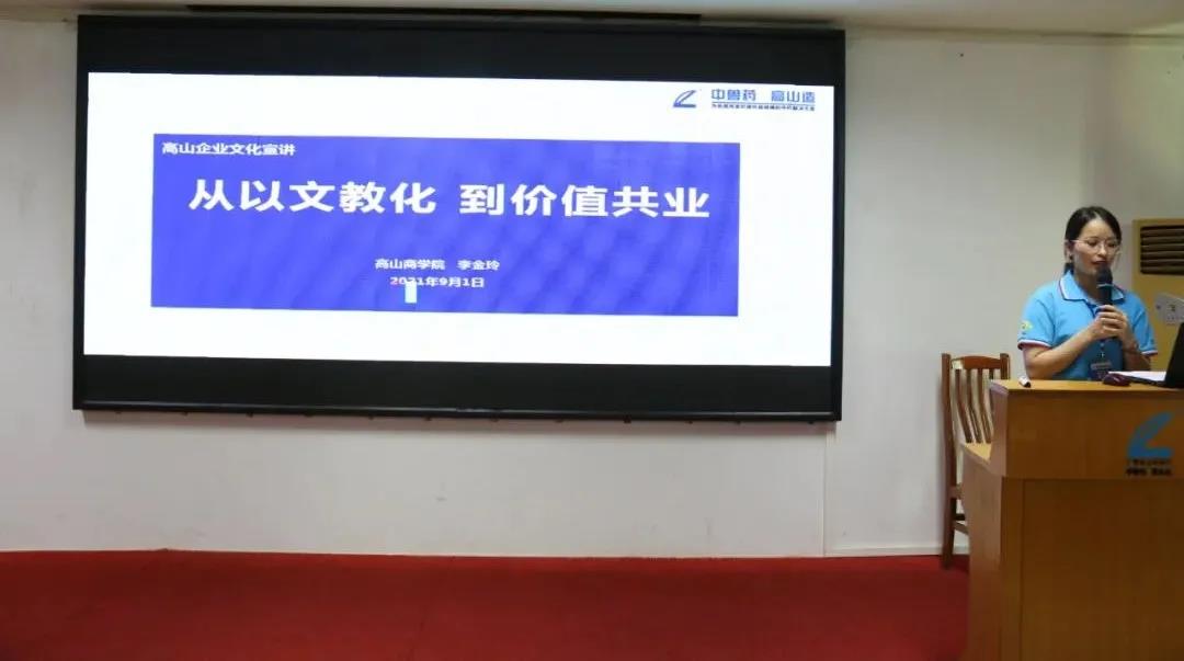 高山商學院李金玲對《企業文化及管理制度》作了宣講,分別從高山文化、形神行、與企業共成長作了詳細的講解。