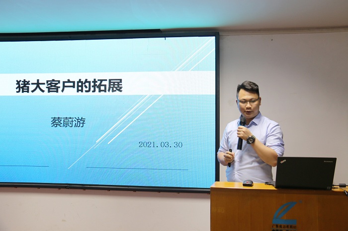 大客戶部(畜)事業部營銷總監蔡蔚游作《豬大客戶的拓展》工作匯報。