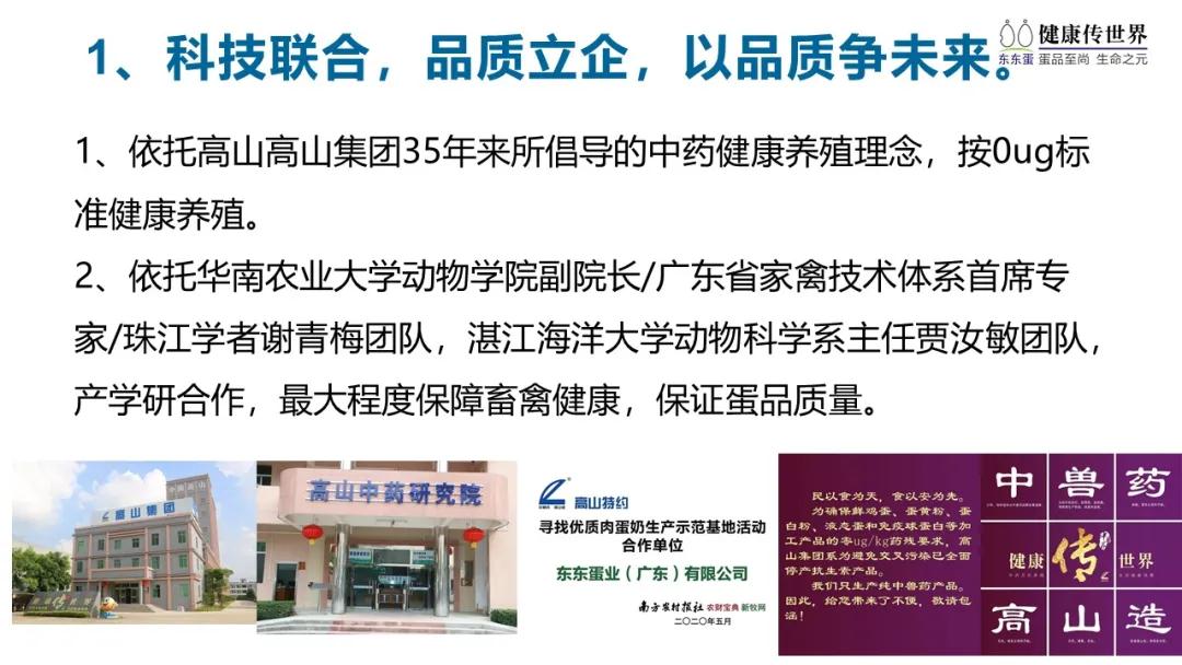 一枚雞蛋,孕育一個(gè)小生命,雞蛋是世界上營養(yǎng)最全面的食品。東東蛋&生命之元,自其品牌誕生之日起,以健康、安全、品質(zhì)、風(fēng)味和功能之發(fā)展原則。秉承無抗、健康、中藥、高質(zhì)為發(fā)展宗旨。