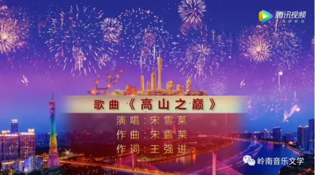 由王強進作詞、宋雪萊作曲的原創歌曲《高山之巔》于1月21日登上《2019中國城市春晚》!著名歌手宋雪萊在廣州小蠻腰下現場精彩演唱。
