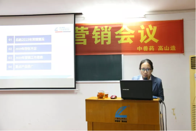 陳翠總監作《2020工作規劃與思路》報告,報告分享了2019年銷售完成情況和2020年營銷工作思路,并提出了2020年月銷售同比翻一番新的目標。