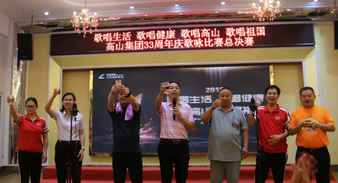 時光如水,歲月如歌。高山集團從揚帆起航到滿載星光,攜手共進,風雨兼程,拼博奮斗,輝煌成就,2019年6月25日迎來了創牌33周年的喜慶時刻。值第二季度營銷會議暨高山集團創牌33周年之際,高山集團舉辦了“歌唱生活,歌唱健康,歌唱高山,歌唱祖國”歌詠比賽為高山慶祝生日,參會人員及高山大家庭成員共百余人參加了晚宴。