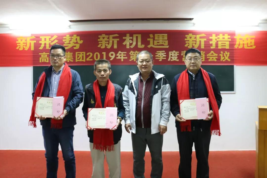 營銷增量獎(jiǎng):粵東區(qū)林日良經(jīng)理(左二)、山東區(qū)楊立堂經(jīng)理(右一)和河南區(qū)孫郃經(jīng)理(左一)