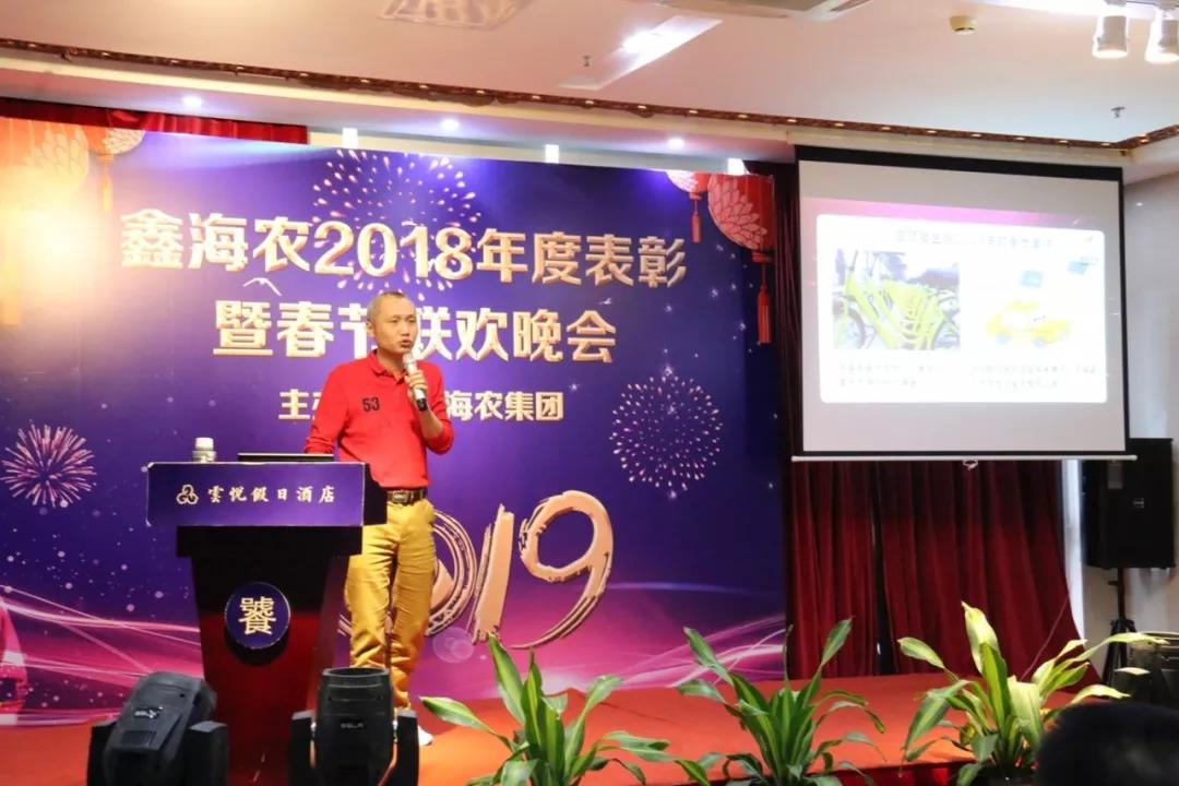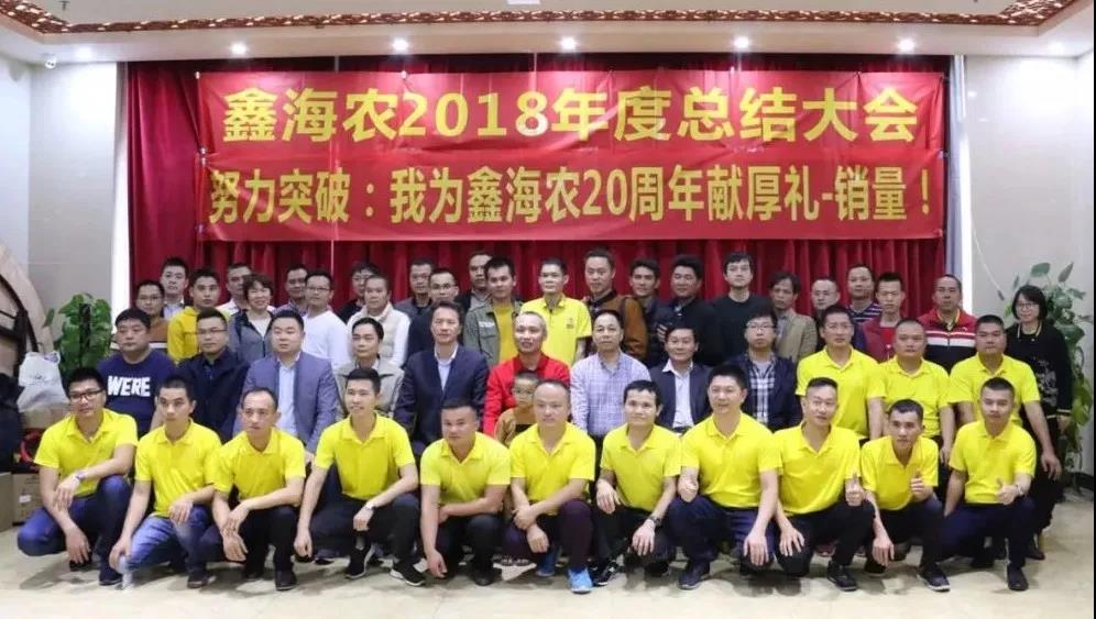 2019年1月27日,2018年度鑫海農集團總結大會在海口舉行,鑫海農集團董事長黃芝幸、高山集團董事長梁其佳、全省鑫海農-高山形象店店長、加盟經銷商伙伴以及高山集團湖北省營銷經理徐俊、市場二部經理鐘飛燕、賴任龍等50余人出席大會。