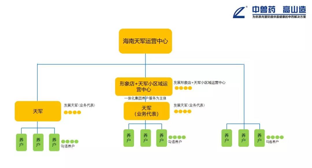 由形象店牽頭發展小區域天軍運營中心是大海南天軍運營中心的重要支撐;以“形象店+天軍”是我們大力發展形象店和推動高山形象店大發展的重要舉措;主要以服務于一體化集團養戶為核心和目標,為優質肉蛋奶提供最健康的中藥解決方案是大海南〈高山-鑫海農〉天軍運營中心的中心工作。