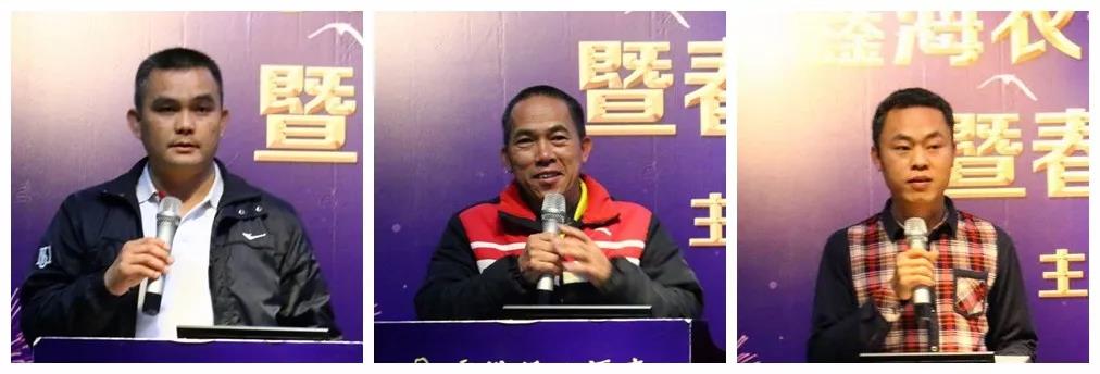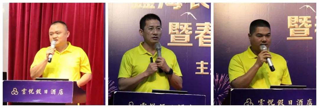 鑫海農獸藥公司總經理陳益洲(左一),鑫海農飼料公司總經理胡杰(中),鑫海農疫苗公司總經理王槐鏡(右一)