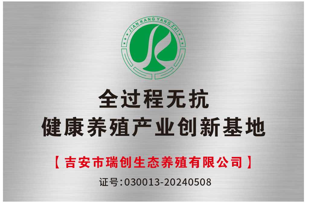 2024年5月25日,吉安市瑞創生態養殖有限公司掛牌《全過程無抗健康養殖產業創新基地》牌匾并授予證書,瑞創的負責人彭聰總經理,從2019年加盟高山“1+1”形象店,到瑞創生態養殖有限公司,從認同中醫中藥大健康理念到大健康無抗養殖踐行者;這是校企合作和省際合作的的重要成果,也是在全過程無抗蛋雞養殖產業創新發展道路上邁出堅實的一步。推動蛋品向更安全和更優質的方向前進,為人民群眾提供安全、健康與優質的食品。