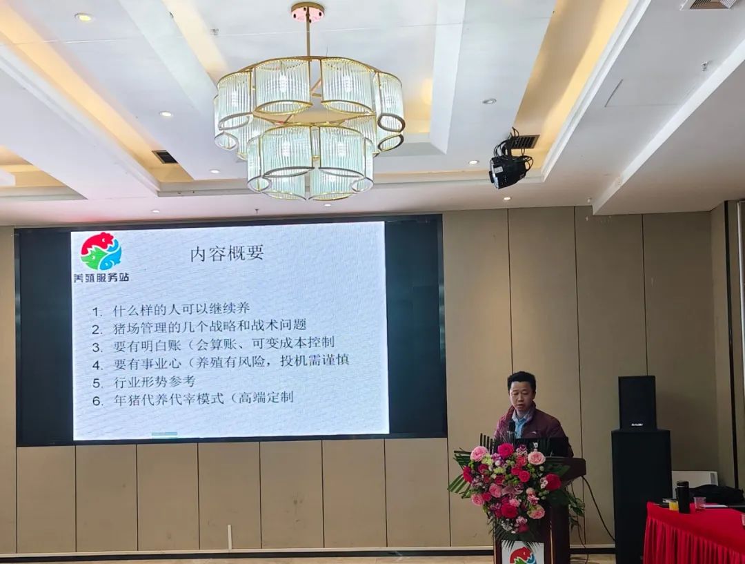 高山“1+1”形象店~沅陵店店長黃秋保作首先發言,對當前如何養好豬的各個方面要點作正確性的指引,重點指出只有健康養豬與提高肉的品質,才是實現效益養殖的未來出路。