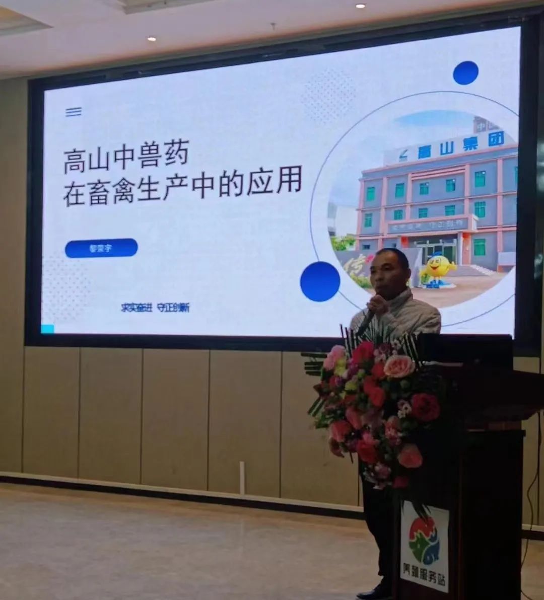 高山集團湖南區域經理黎榮宇,分享了《高山中獸藥在畜禽生產中的應用》,分別從家禽、牛羊、豬等方面講解了高山中藥無抗大健康養殖理念與保健方案,并詳細介紹了中獸藥在優質肉蛋奶品中的應用案例;最后作了高山集團簡介,高山,創牌于1986年,始終堅持走中獸藥品牌的發展道路,倡導“無抗使用中藥有助于畜禽健康,保障畜禽健康實現人類安全”的人畜安全的“大健康”生態養殖理念。