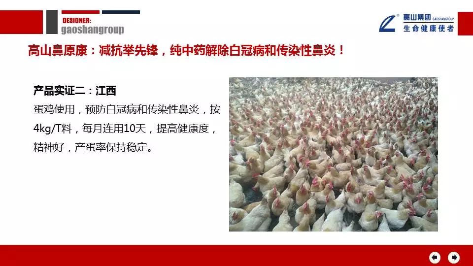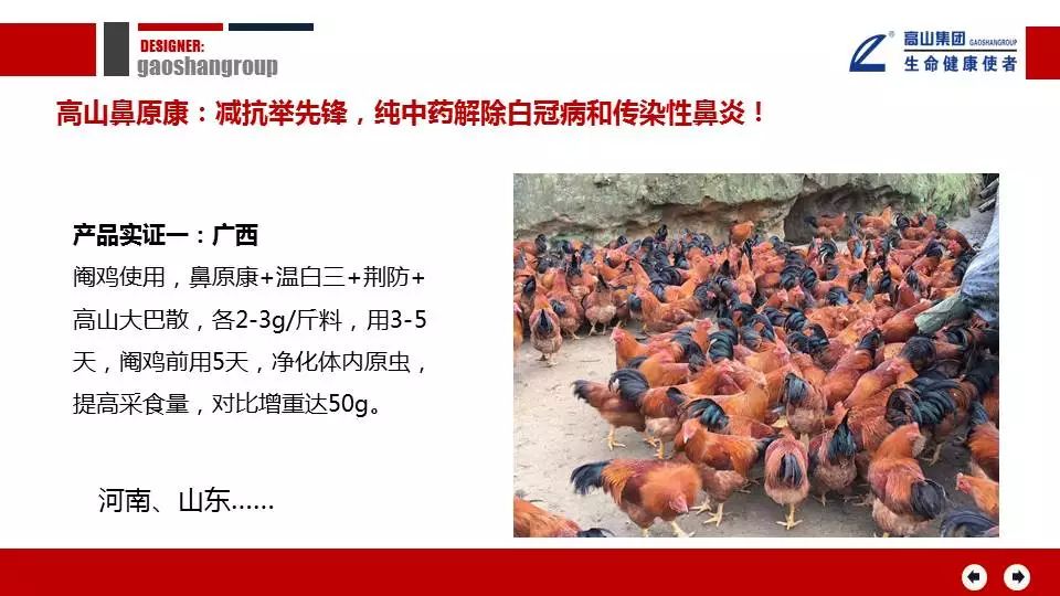 3、白冠病和傳染性鼻炎。這兩個(gè)病貫穿春夏秋冬季節(jié),交錯(cuò)流行。從3月開始,長(zhǎng)江流域,從5月開始,黃河流域發(fā)生較多。傳播速度快,死亡率高,生產(chǎn)性能丟失多,是這個(gè)病的共性,損失巨大。用高山鼻原康,鼻原康發(fā)病即用,按4kg/噸,重證8kg/噸,連用5天,用了馬上見效,與磺胺類藥成本對(duì)比相差不大,且效果最確切。