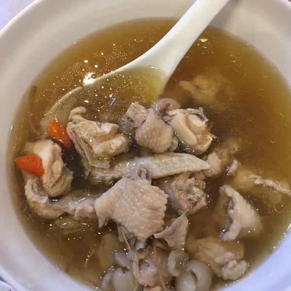 國雞腿一個,紅棗7~8個,枸杞20~30個,桂圓7~8個,糯米酒沒過雞,燉3個鐘頭。
