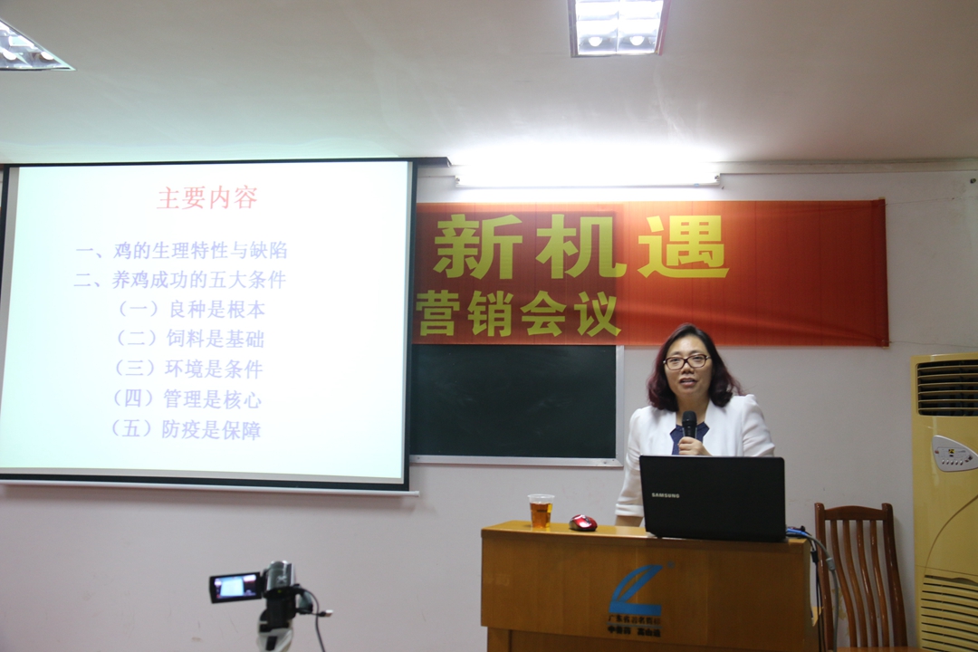 會議中,由華南農業大學動物科學學院副院長、教授、博士生導師、廣東省高等學校“珠江學者”特聘教授、廣東省家禽產業技術體系首席專家謝青梅作了《肉雞飼養管理》和《家禽重要疫病防控》報告。