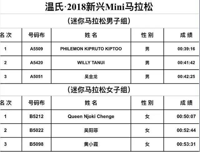 經過激烈的角逐,最終來自肯尼亞的選手Philemon Kipruto Kiptoo以39分16秒的成績獲得男子迷你馬拉松(12.5公里)公開組冠軍,來自肯尼亞的Willy Tanui以41分42秒獲得亞軍,來自中國的吳金龍以42分25秒獲得季軍;女子迷你馬拉松(12.5公里)公開組冠軍由來自肯尼亞的選手Queen Njoki Chenge奪得,成績是50分07秒,亞軍來自中國的吳陽菲,成績是52分44秒,季軍來自中國的黃小霞,成績是53分31秒。