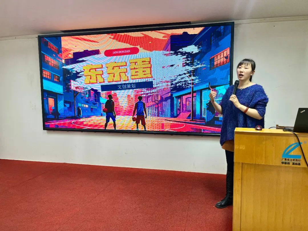 湛江科技學院美術與設計學院動畫專業孫麗娜副教授,在交流會上作有關東東蛋品牌動漫童話故事的構思與大健康體系的打造說明。