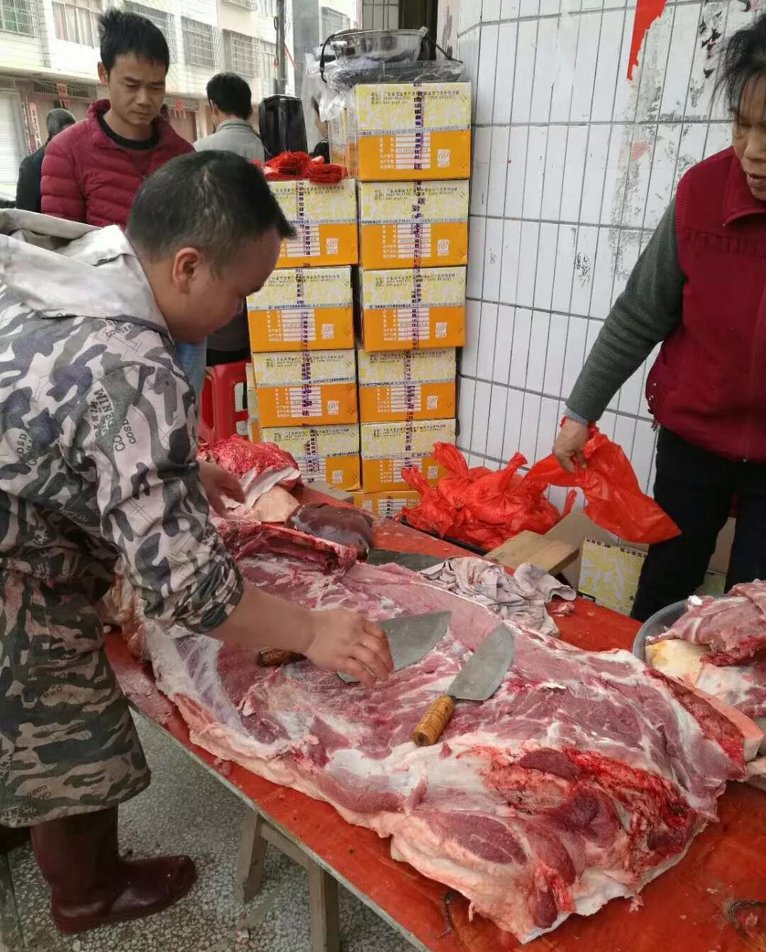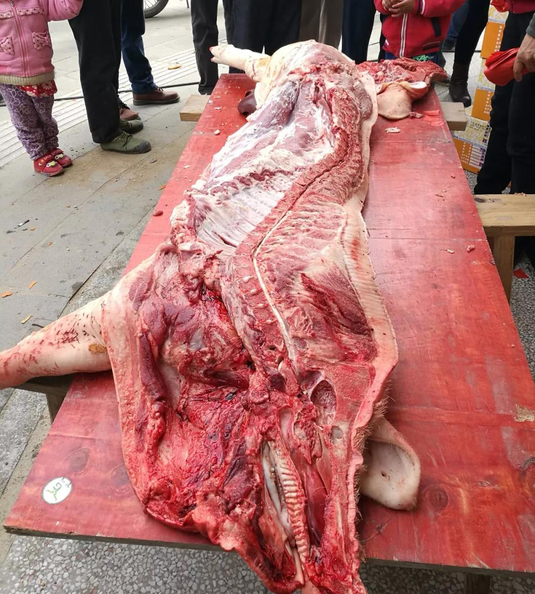 2018年1月14日在北流白馬,玉林惠信動保舉行“肥大康”豬肉品嘗會,當(dāng)場宰殺一頭使用肥大康喂養(yǎng)的大豬,養(yǎng)6.5個月,毛重358斤,酮體重299斤,酮體率83.5%,養(yǎng)戶說從來沒養(yǎng)過這么重的豬,非常滿意!
