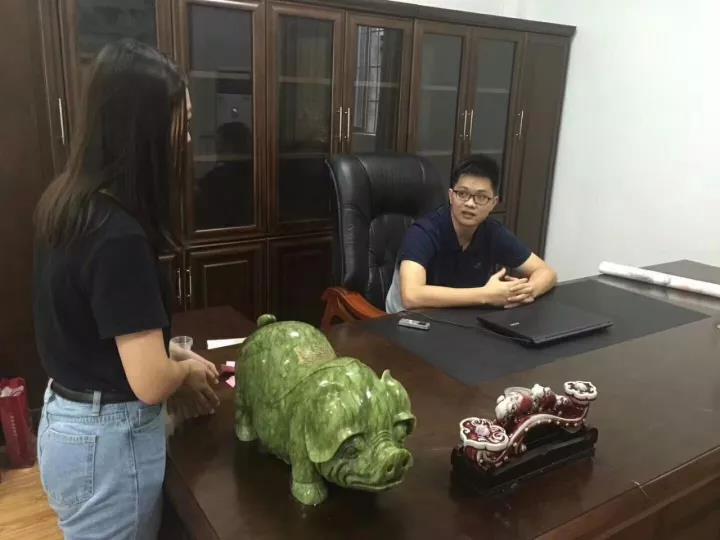 由高山公司贈送碧玉福豬(右一為鄭偉堅總經理)