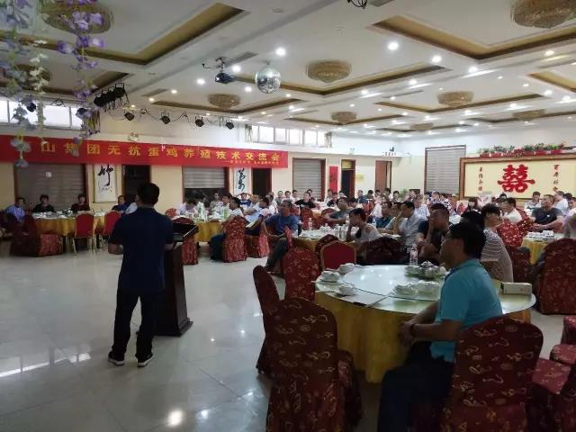 2017無抗蛋養殖技術推廣會今天在山東省萊蕪市召開。中國著名禽病專家彭激夫、高山集團技術經理尹海良、山東營銷總經理楊立堂和山東地區各大養殖場代表等150多人出席了本次推廣會。
