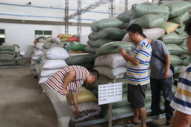 李維峰總裁、劉建高博士、王志華總經(jīng)理參觀高山中藥加工車間