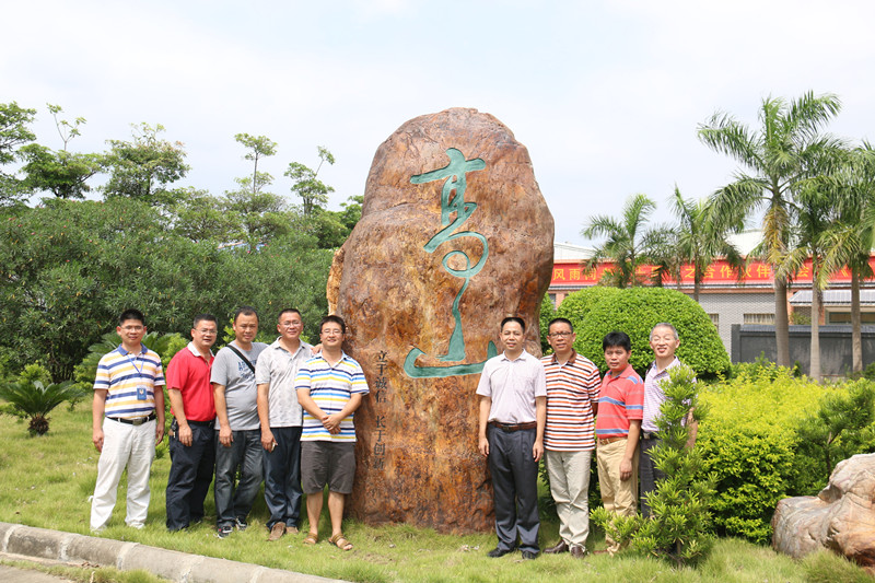 新希望六和股份有限公司廣東新區(qū)總裁李維峰(右三)、廣東新區(qū)技術(shù)總監(jiān)劉建高博士(左五)和茂名六和飼料有限公司總經(jīng)理王志華(左四)與公司高層在高山中藥文化園合影