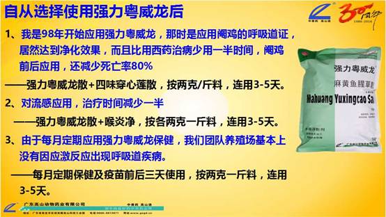 1、沈少清:強力粵威龍在三黃閹雞應(yīng)用了20年的體會
