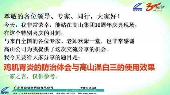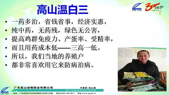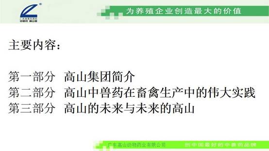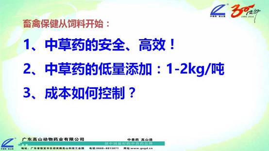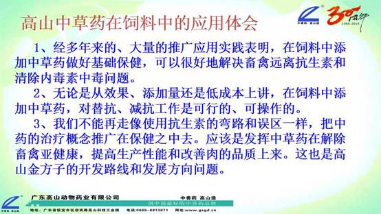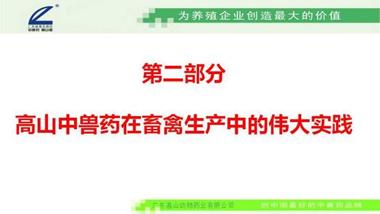 本次論壇,高山集團為全場與會嘉賓展示了高山30周年在中獸藥實現(xiàn)畜禽健康養(yǎng)殖的偉大實踐,30年高山的忠誠用戶更是在這次大會上用精彩的PPT展示了高山中獸藥在實際應(yīng)用的確切效果!