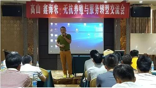 2016年4月17日,《高山-鑫海農(nóng)無抗養(yǎng)殖與服務(wù)技術(shù)轉(zhuǎn)型研討會》在海南省金日大酒店舉行,技術(shù)講座由中獸藥研發(fā)與應(yīng)用首席專家彭激夫教授主講,高山梁董事長、林總、丘總等一行,鑫海農(nóng)黃芝幸團隊高層及其來自全省的門診合作伙伴、飼料企業(yè)、養(yǎng)殖企業(yè)等代表近100人參加了會議。