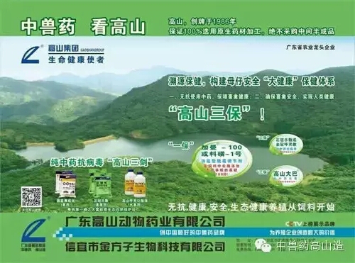 ●純中藥抗病毒“高山三劍”:一劍是畜禽純中藥抗毒,定期或治療添加強力粵威龍或正冠樂;二劍是水禽純中藥抗病毒,定期或治療添加金冠呼靈散或高山呼靈口服液;三劍是家畜純中藥抗病毒,定期或治療添加圓藍粵威龍。
