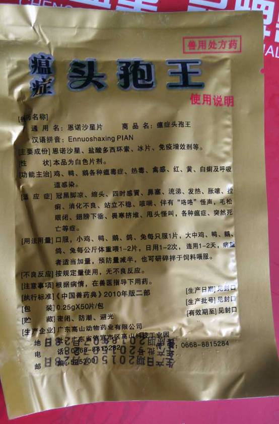 一、近期在湖南地區出現的“瘟癥頭孢王(恩諾沙星片)”是非本公司生產的假冒偽劣、假冒高山牌的產品,本公司并沒有生產瘟癥頭孢王(恩諾沙星片),歡迎來電咨詢。公司電話:0668-8810618。