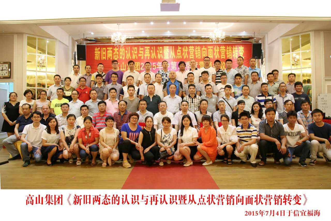 2015年7月4-5日,高山集團在信宜隆重召開《新舊兩態的認識與再認識暨從點狀營銷向面狀營銷轉變》營銷會議,全國各地嘉賓與高山營銷精英近100人參加。