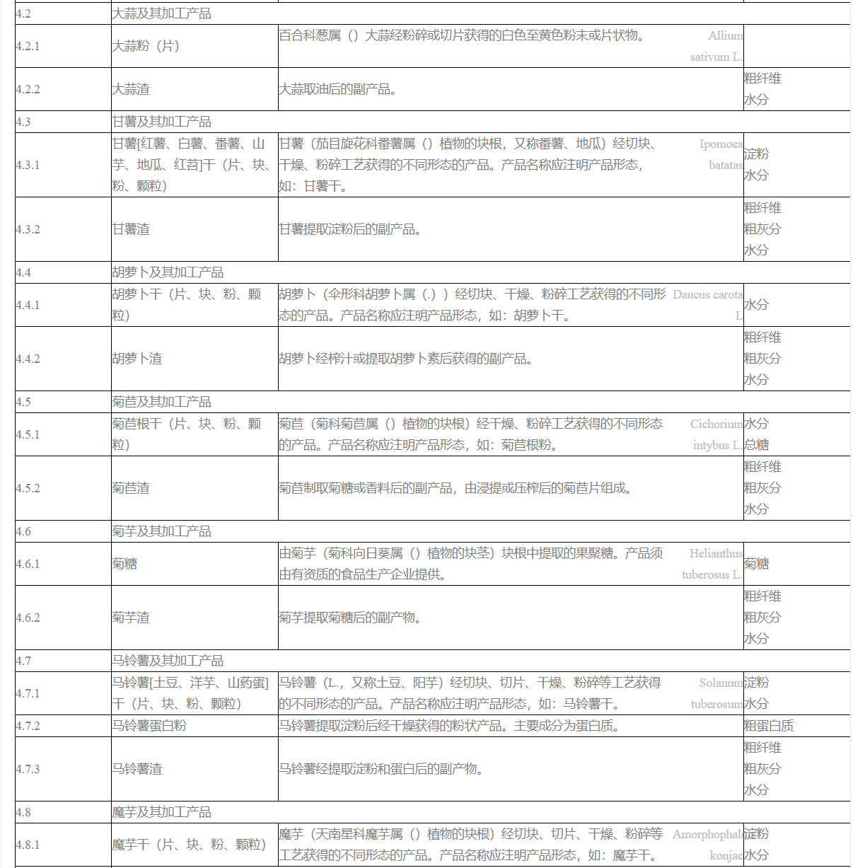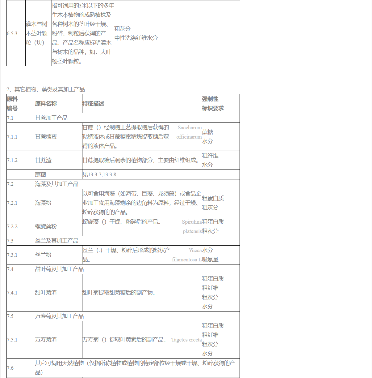 8.除目錄中有特殊規定外,植物性飼料原料的植物學純度通常不得低于95%。