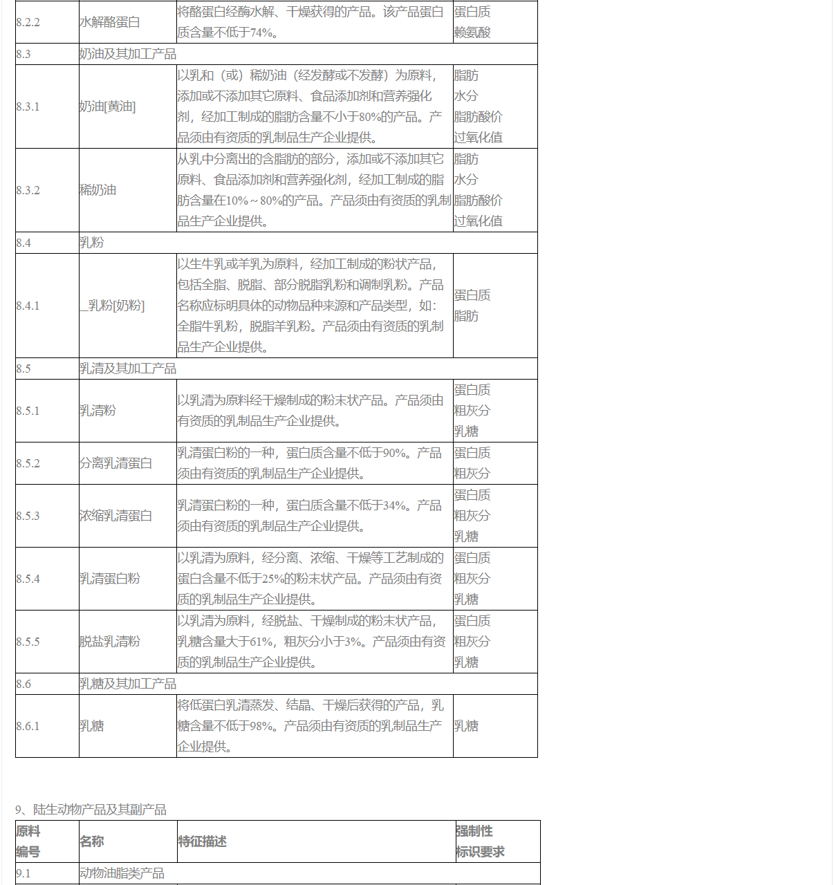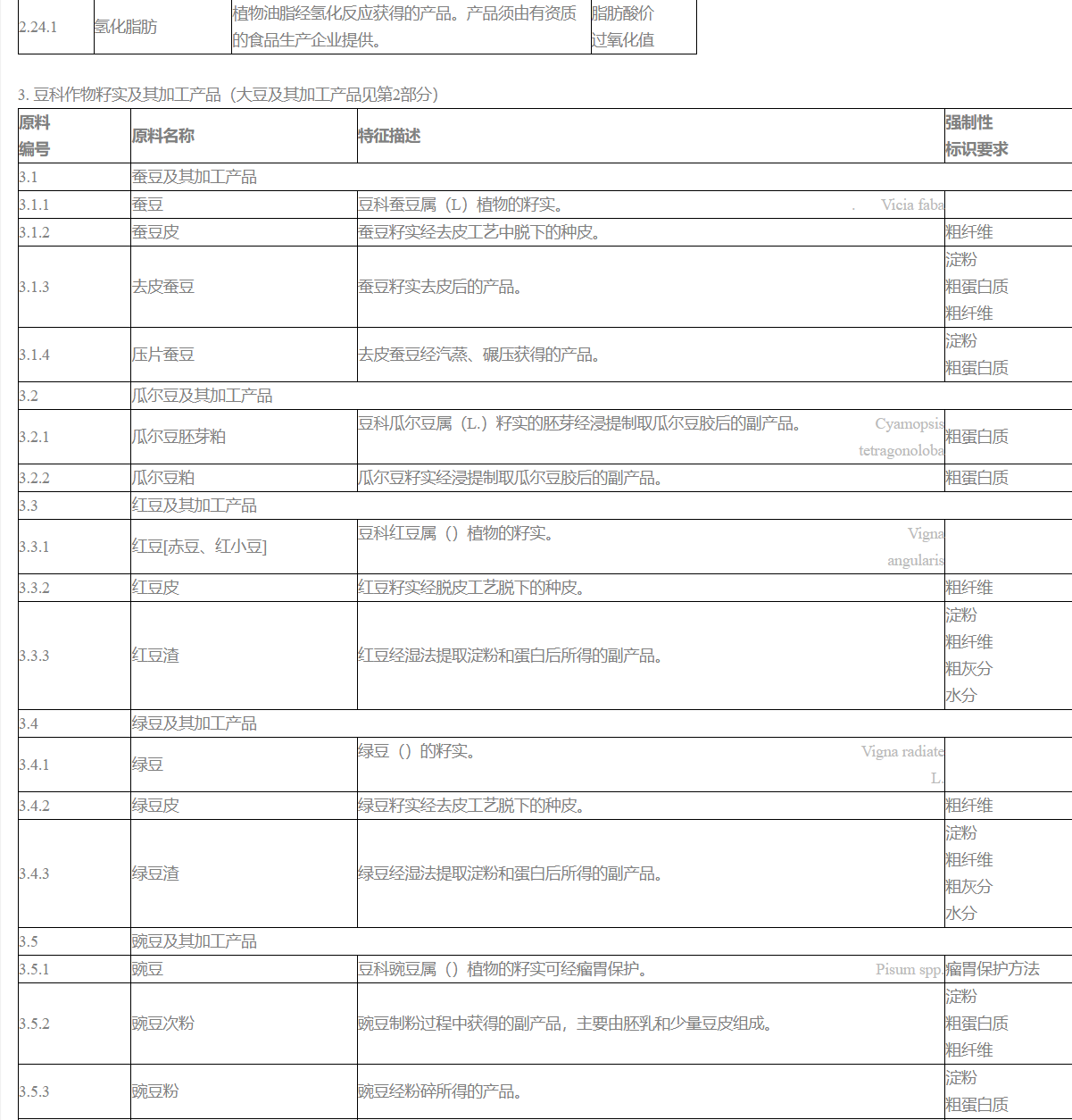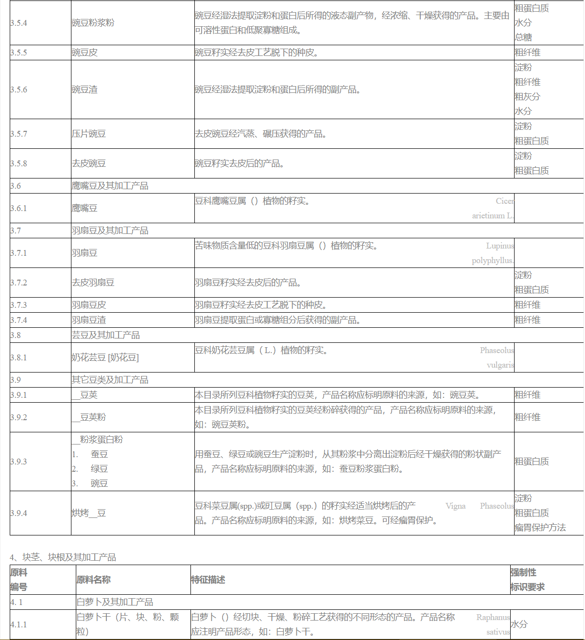 4. 目錄第三部分中“強制性標識要求”所規定的項目為原料的質量或衛生特征指標,應在原料標簽的分析保證值等項目中列出。