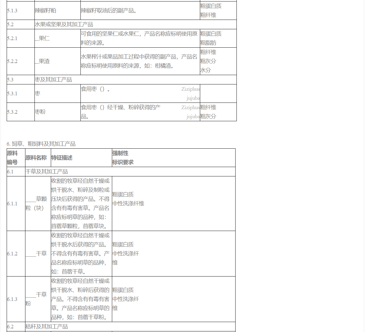 6. 按照本目錄生產、經營或使用的飼料原料,應符合《飼料衛生標準》、《飼料標簽》等強制性標準的要求。