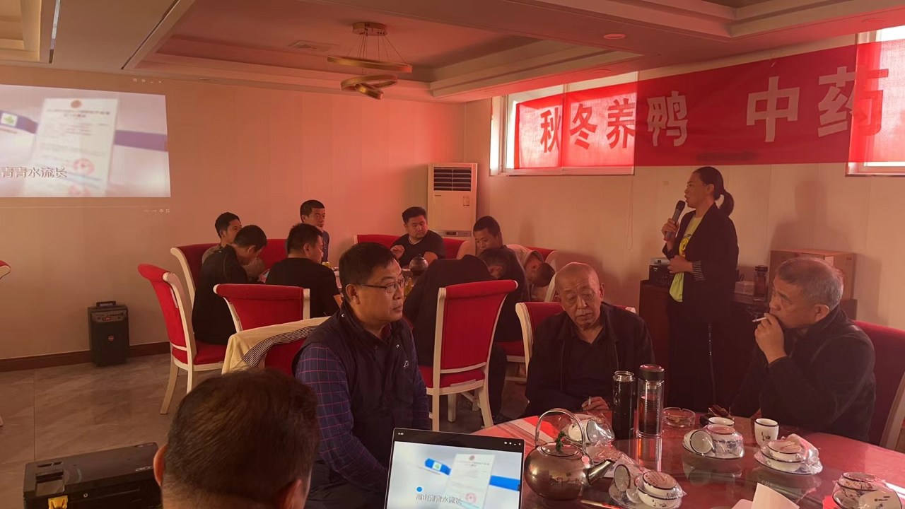 2024年10月26日,蛋鴨中藥無抗大健康養殖技術交流會在山東莘縣成功舉辦,高山集團營銷經理楊立堂、資深技術老師王秀華與客戶嘉賓代表等近40多人參加會議。
