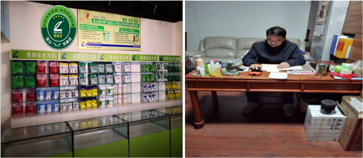 傳播中醫中藥大健康預防理念,守護家禽安全健康發展,尚文明店長他領導服務團隊、創新思維,全力做好形象店運營與服務工作;從關注每個養殖場、養殖欄舍養殖情況,到關注每只雞的健康開始,嚴格控制好每一點可能致病的因素,養殖要做到大健康,就要從做好養殖的日常預防保健開始,尤其是蛋雞。通過摸索與總結養殖經驗中,得出使用中藥預防保健,是最容易實現疾病防控的,才能減少各類畜禽,尤其是蛋雞常見疾病的發生,這種養殖理念與高山公司所提倡的不謀而合。與尚店長交流中知道,他初認識廣東高山,只知道高山是生產中獸藥的一個廠家,沒有特別的關注,自從加盟高山“1+1”加盟形象店以來,每一次蛋雞場上出現疾病,使用上高山中藥產品,都能得到很好的解決,讓他信心滿滿。尤其是料磺1號等系列的產品,使用在蛋雞養殖保健上,可以排毒、解毒,提升腸道消化吸收的功能,使用高山產品的組合預防方案,能很好地讓養殖場少發病或不發病,保障家禽健康,提升了產蛋率、蛋的品質等,同時也提升了其在當地的獸醫技術水平與地位,更進一步深受當地廣大養殖的認可與一致的好評。
