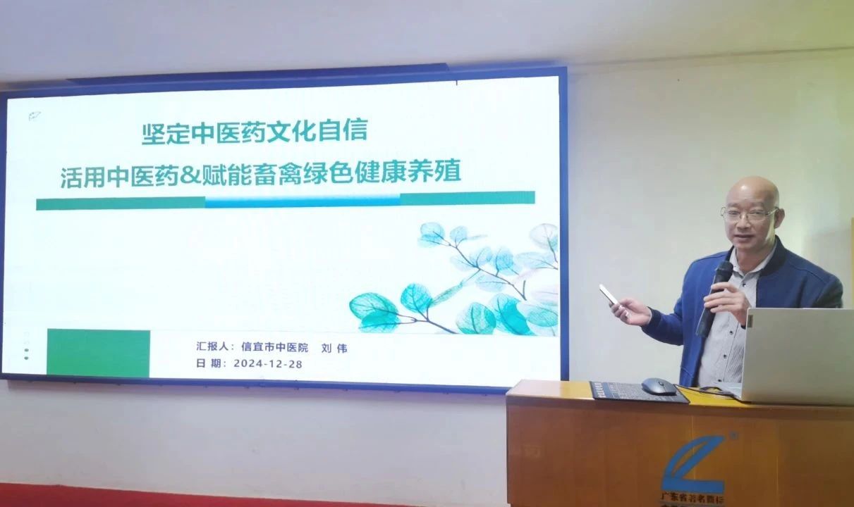 信宜市中醫院黨委書記,副主任中醫師劉偉作《堅定中醫藥文化自信活用中醫藥&賦能畜禽綠色健康養殖》報告,首先詳細講解中醫的基礎知識與中醫思維,同時分析中醫藥如何防治雞球蟲病,最后分享我們要發揮中藥在養殖中的優勢特色,要堅定中醫藥文化自信,堅定用好中醫藥實現無抗養殖的信念,賦能畜禽綠色健康養殖。