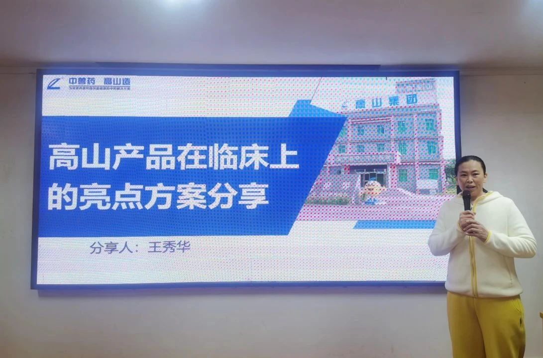高山形象店店長王秀華老師作《高山產品在臨床上的亮點方案》分享,主要分享大病毒、大呼喘、大霍亂、大腸道、大毒素、大應激和大原蟲等七大功能產品的使用心得,特別是心包和積液證,并發非典型霍亂時用正冠樂+高山大巴+料磺1號,提高產蛋脈沖式用料磺5912,種禽產前保健用料理18。關鍵產品:正冠樂,強力粵威龍,輸卵康,料磺5912,料磺1號,高山粵威龍,肥大康。
