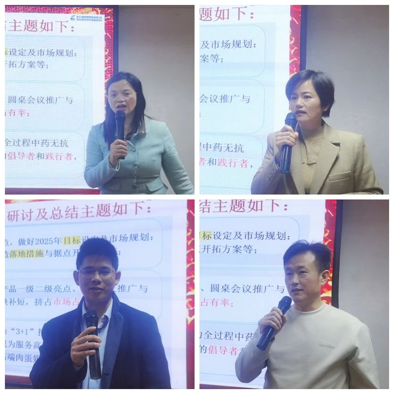 營銷中心總監陳翠作《2024-2025年度營銷工作總結與計劃》,首先她總結了2024年營銷工作,即將過去的2024年,我們緊扣中藥無抗大健康養殖理念開展工作,在卷中重生,實現銷售同比大增長,成績來之不易。同時,她也分析了不足及存在問題。在新的一年,我們要緊緊圍繞《2025年高山十件工作安排》的總規劃總方針總路線,扎實推進“三個1工程”,做好2025年度營銷工作,向無抗,向健康,向優質,前進。堅定啟航新征程,踔厲奮進譜新篇!