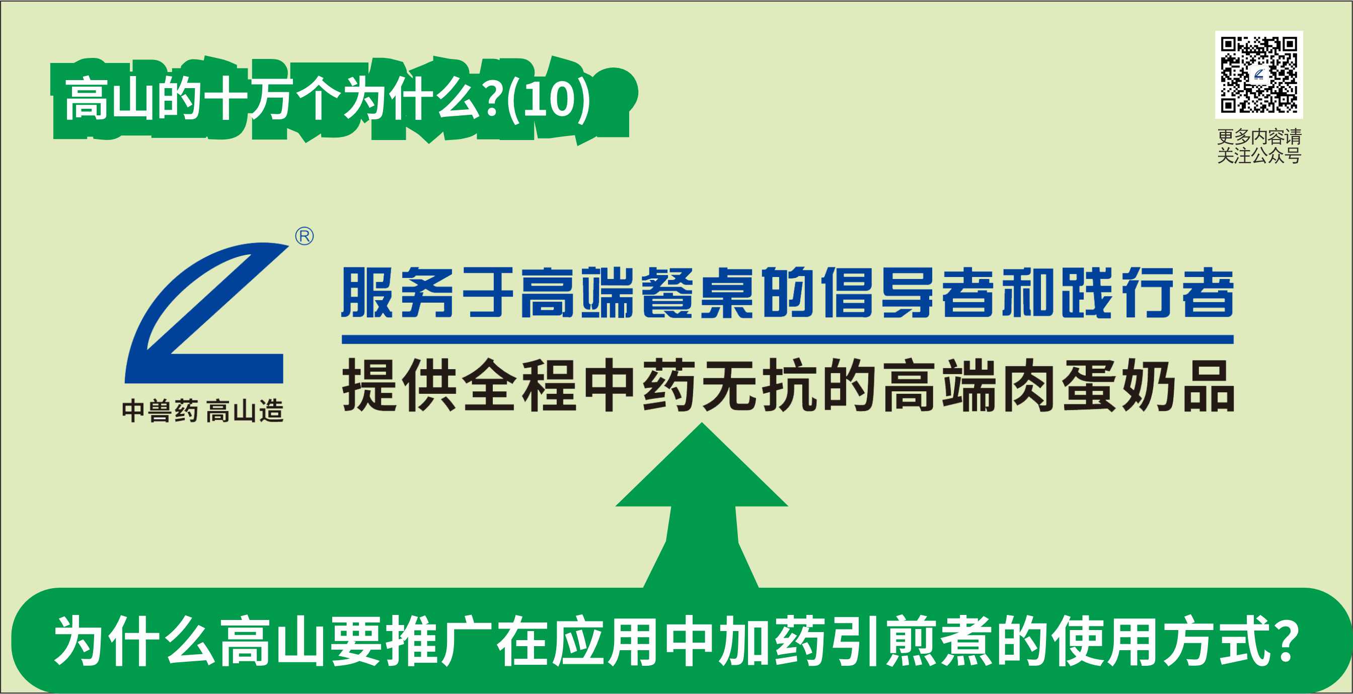 高山中獸藥,一直在積極倡導和推廣在畜禽養(yǎng)殖生產(chǎn)中采用“加藥引煎煮”的使用方式。 一、更好地發(fā)揮傳統(tǒng)中藥在畜禽生產(chǎn)中的引經(jīng)靶向作用,提升產(chǎn)品的生物利用與作用。中藥產(chǎn)品,通過煎煮或開水浸泡后服用,有助于提高產(chǎn)品成分在機體內(nèi)的利用。例如,瘟毒邪疫產(chǎn)品“正冠樂”和“強力粵威龍”,通過煎煮使用,作用更好。若加入藥引(如紅糖、生姜、大棗等)后煎煮,作用更佳。煎煮,能使藥材的有用成分充分釋放,并通過藥引“引經(jīng)”,靶向直達效用部位。 此外,高山中藥,采用機械超微技術(shù)加工的中藥散劑,如水懸浮散劑,直接拌料尤其是經(jīng)煎煮后拌料,或飲水服用,既方便操作,又增強作用,從而優(yōu)化產(chǎn)品的生物利用。二、通過煎煮使用,可在一定程度上降低了相關(guān)因素對機體的毒副作用。還有,在疫苗接種期間,或在種禽畜的用藥禁忌期內(nèi),煎煮后的中藥產(chǎn)品用于保健、預防或治療,更好地避免因不明藥物之間的相互作用影響免疫效果。通過煎煮使用,還可以中和部分藥材的寒熱偏性(如溫性或涼性藥物),減少對畜禽胃腸道的刺激。三、傳承與創(chuàng)新傳統(tǒng)中醫(yī)的“整體觀”與“治未病”理念,更體現(xiàn)了對幾千年來優(yōu)秀傳統(tǒng)中醫(yī)文化的精髓傳承。通過運用中醫(yī)中藥理念的整體觀,通過加藥引煎煮,即可直接針對機體,調(diào)節(jié)機體的整體免疫功能,從而增強畜禽機體對病原體的免疫防御能力。如在預防家禽呼吸道證候上,“金冠呼靈”配合藥引煎煮后使用,既能緩解證狀,又能有助于降低在病毒潛伏期的機體繼發(fā)性感染,體現(xiàn)了“治未病”的前置預防思想。四、適應(yīng)規(guī)模化現(xiàn)代化集約化養(yǎng)殖的精細化個性需求,體現(xiàn)其方便性和有效性。在高密度、集約化養(yǎng)殖場景下,疾病防控需兼顧效率與精準性。通過標準化煎煮流程(如藥引配比、煎煮時長)和分階段使用方案(如家禽3-5天、家畜5-7天),可以幫助養(yǎng)殖企業(yè)實現(xiàn)精準使用。例如,針對家禽呼吸道綜合征,煎煮后的產(chǎn)品可通過噴霧或薰蒸方式直接作用于呼吸道黏膜,更快緩解癥狀。 五、高山關(guān)于健康傳世界的發(fā)展理念,就是為養(yǎng)殖者,更為消費者創(chuàng)造更大的價值的服務(wù)宗旨。高山推廣“加藥引煎熬”的使用方式,既是中醫(yī)傳統(tǒng)智慧的現(xiàn)代化應(yīng)用,也是應(yīng)對養(yǎng)殖業(yè)挑戰(zhàn)的創(chuàng)新實踐,以及將獨特的中藥理念應(yīng)用于畜禽生產(chǎn)的更廣泛實踐,這無不體現(xiàn)在靶向給藥、提升作用、保障安全、踐行健康,守正創(chuàng)新、傳承文化、精準需求以及順應(yīng)安全無抗健康消費的新趨勢等方面。高山中藥,從中獸藥,高山造,到高山“1+3+1”中藥無抗健康養(yǎng)殖理念,到致力于成為服務(wù)高端餐桌的倡導者與踐行者,為餐桌提供全過程中藥無抗的高端肉蛋奶品,就是高山中獸藥近40年發(fā)展的經(jīng)驗總結(jié)與實踐結(jié)晶。