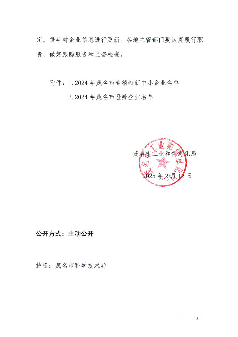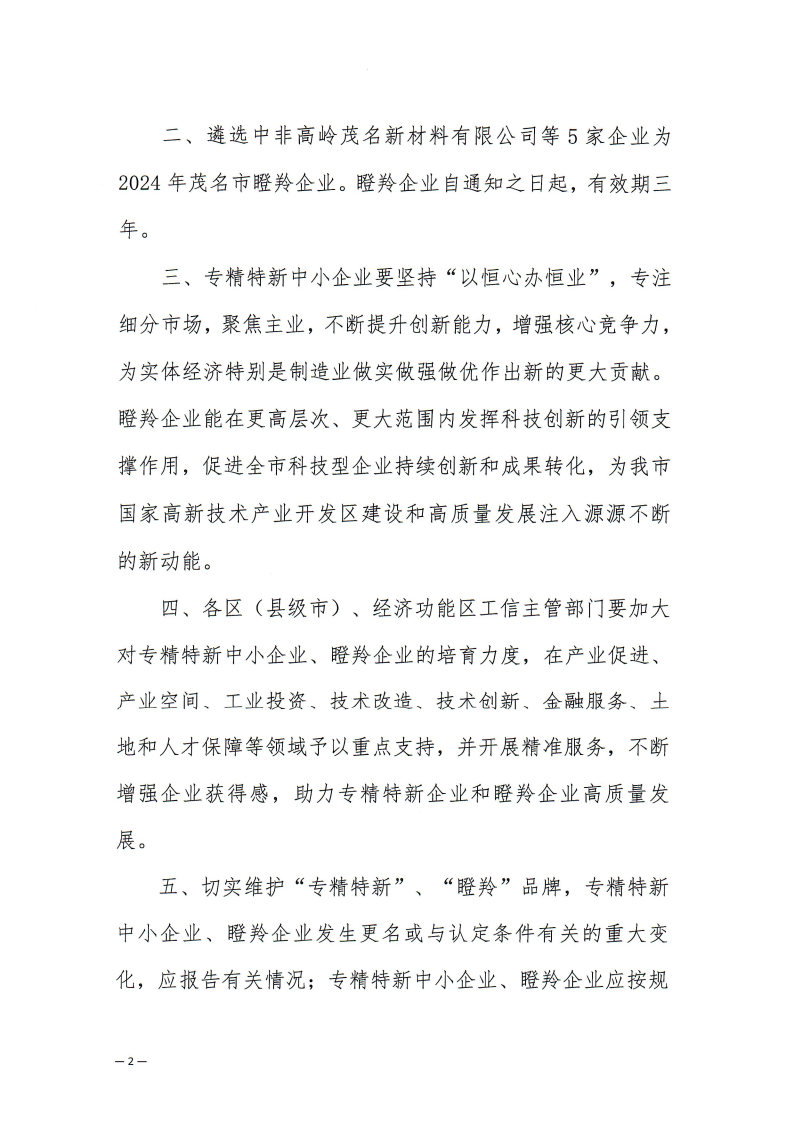 【喜訊】高山/金方子被評為2024年茂名市專精特新中小企業
