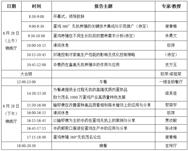 會議主題:“為餐桌提供全過程無抗高端優質肉蛋奶品,助力茂名1000萬蛋雞產業高質量特色發展”。