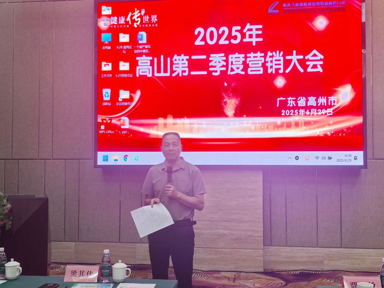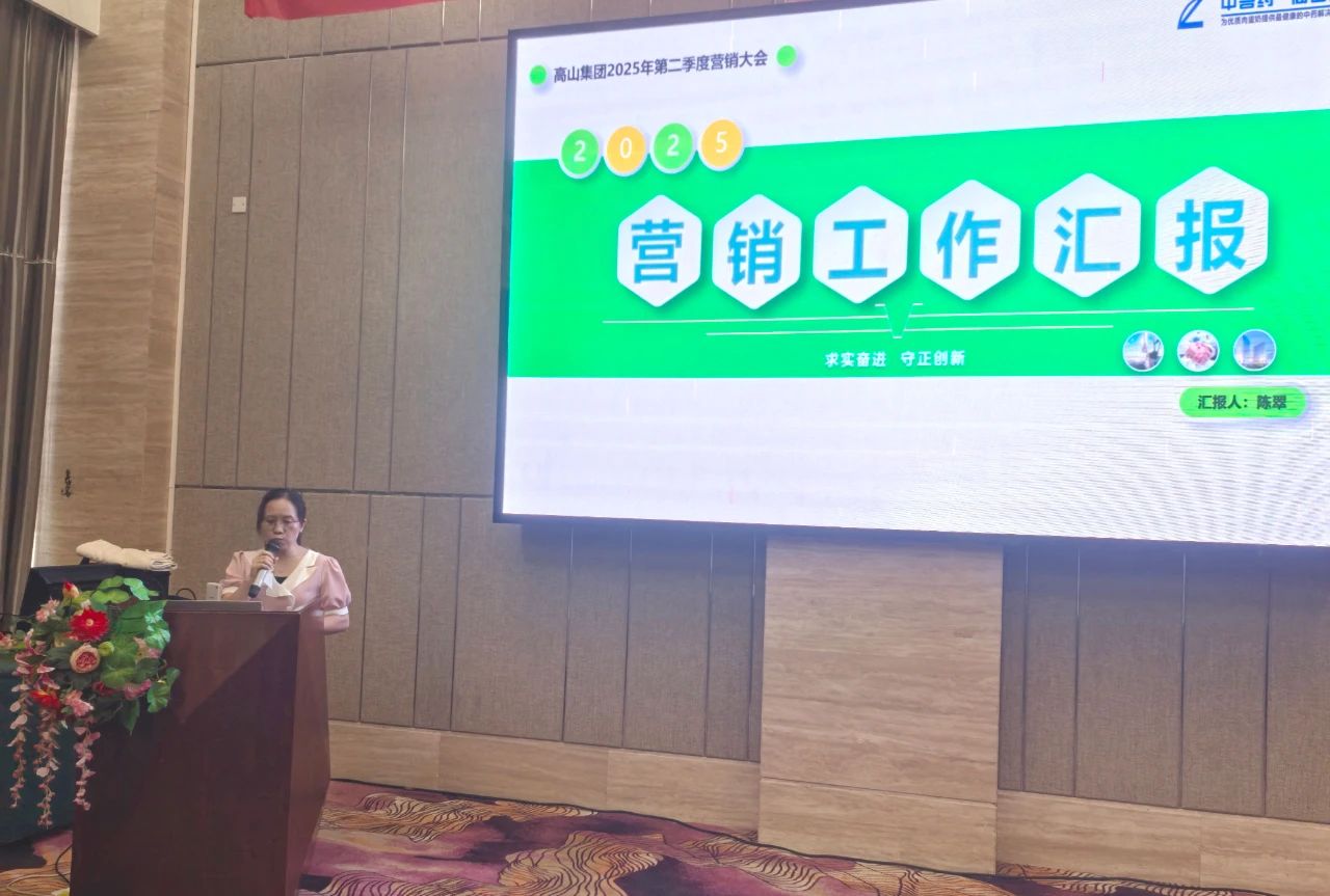 2025年6月29日,高山集團2025年第二季度營銷大會在茂名高州市樂天溫泉酒店成功召開,來自全國三十多個省區的高山營銷精英、客戶嘉賓、公司管理代表近60人參加大會。大會由營銷中心副總監龍美秀主持。