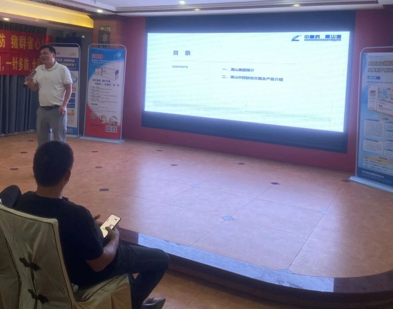 會上,高山集團營銷經理黎達堅緊扣大健康養殖減抗主題帶來了精彩分享。在《近期主要鵝病防控探討》分享中,他指出鵝病的防控是一項系統工程,要從“養、防、檢、治”做好防控,尤其要使用中藥做好定期預防,如呼腸孤用六康、禽流感用正冠樂和安黃舒、鵝副黏病毒病用正冠樂和料磺1號、小鵝瘟用四逆湯和白頭翁散、痛風用風道等。