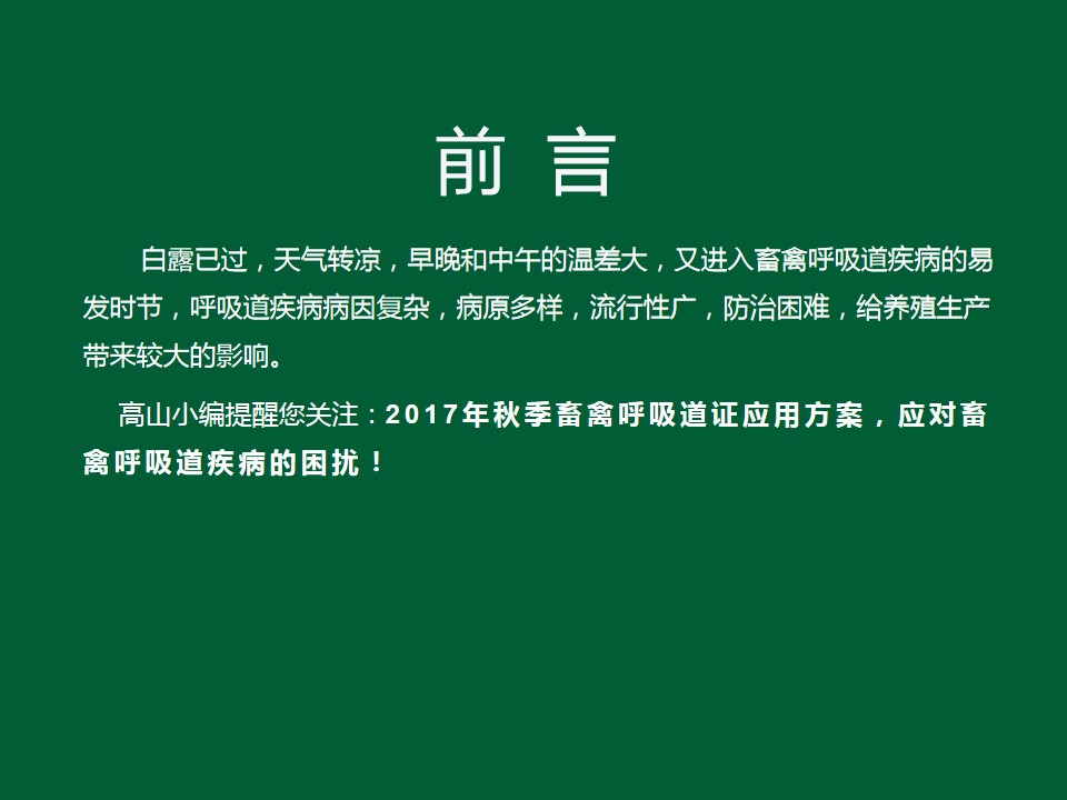 2017年秋季畜禽呼吸道證應(yīng)用方案