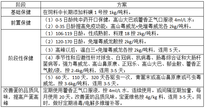 關于上述影響產蛋期的各種因素,排除和解決的措施并無新奇之舉,主要還是依靠日常科學、系統、正確的管理。總之,飼養管理是一個復雜的系統,雞病康復也需要過程,良好的產蛋高峰峰值的基礎是青年雞質量,高峰期的延長維持則是需要多方措施綜合發揮效力。